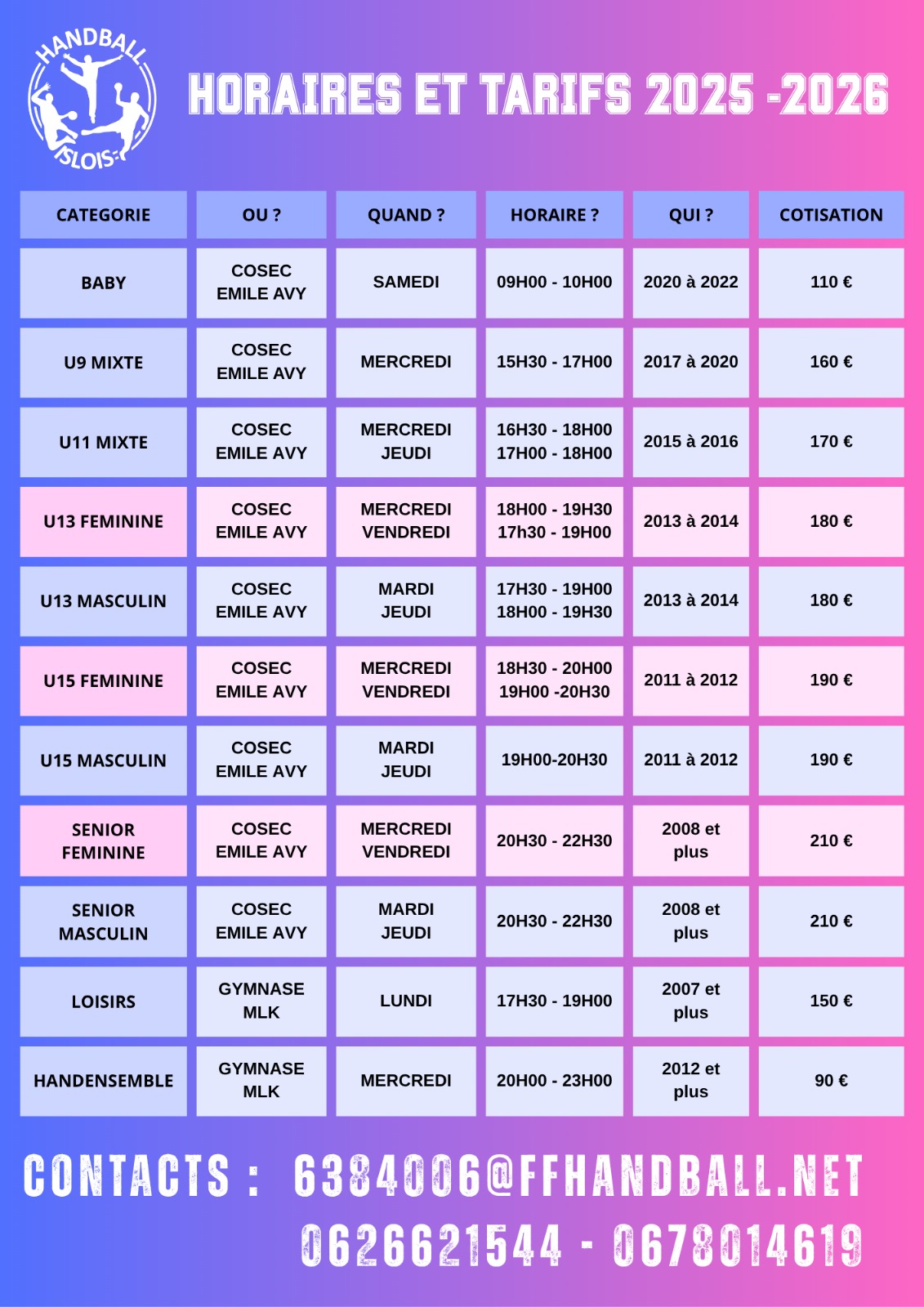 Pour plus d’info mail : 63845006@ffhandball ou 06 78 01 46 19 ou 06 26 62 15 44